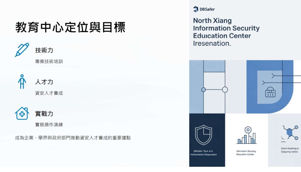 為因應近年雲端化、零信任架構浪潮以及日益嚴格的法規要求,「北祥資安教育中心」將以實務導向為核心,致力培育兼具理論與實戰能力的企業資安專業人才。北祥科技服務發言人王金輝認為,結合PNPSECURE原廠技術、威彼資訊國際整合經驗以及北祥自身在地化服務能量,打造一座兼具教育訓練與實戰演練的專業基地。教育中心課程涵蓋DBSAFER的入門基礎班到高階認證課程,從操作入門、特權帳號管理與稽核防護實作,並配備安全隔離的實機操作環境,讓學員能在真實模擬中強化資安防護力。